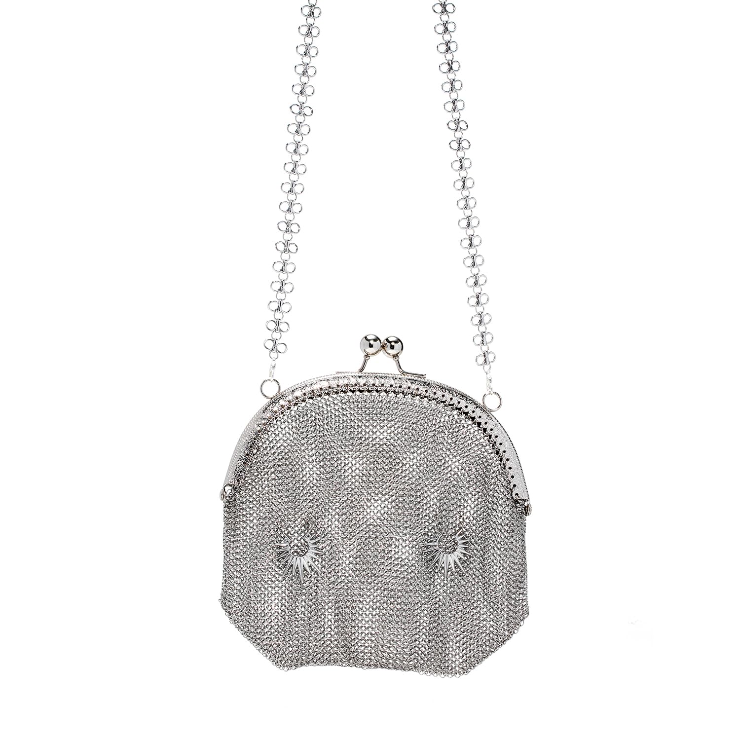 Metallic Chainmail Purse – Retro Silver Mesh Evening Handbag for Women